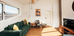 Ein Highlight der Wohnung ist der private Aussenbereich mit einer 10 qm grossen Sonnenterrasse mit Essbereich und Sonnenliege samt Bergpanorama und idyllischem Vogelgezwitscher.